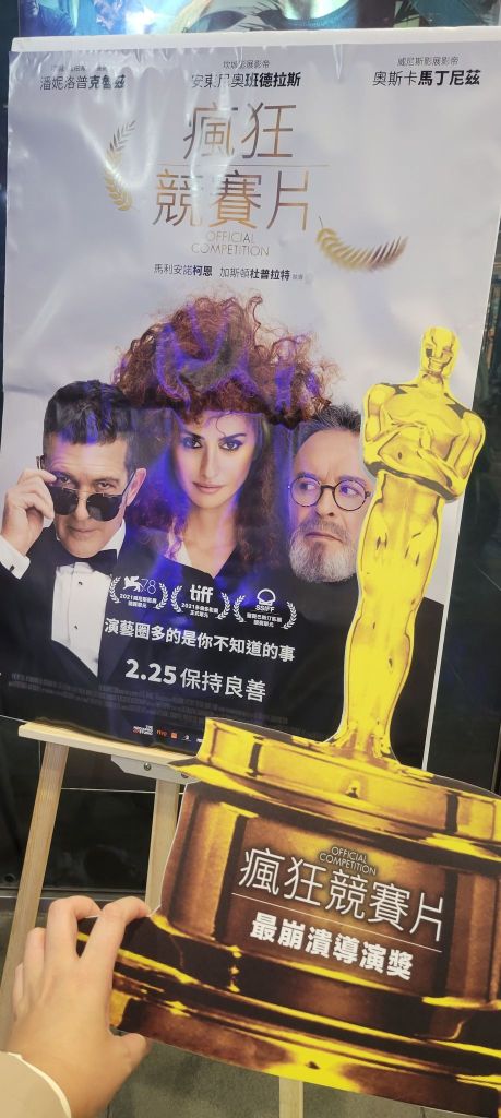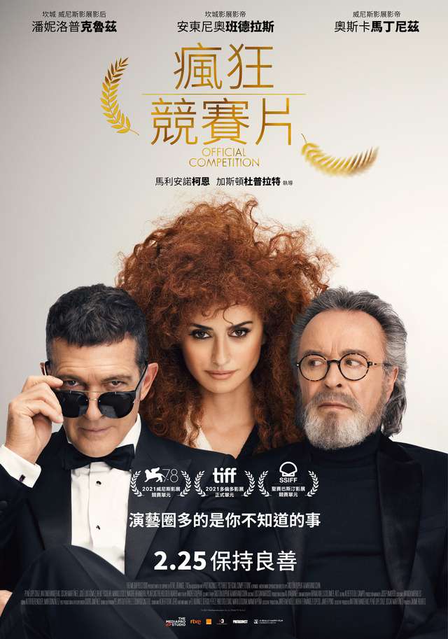 影帝級演員互尬演技,演的故事名稱是「敵對」,兩人演著演著,竟真的在排戲過程裡,擺譜較勁,敵對了起來,而這正是這部電影《瘋狂競賽片》(Official Competition)片如其名,最精采的地方。
